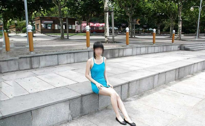 蓝衣小美女公园露出